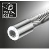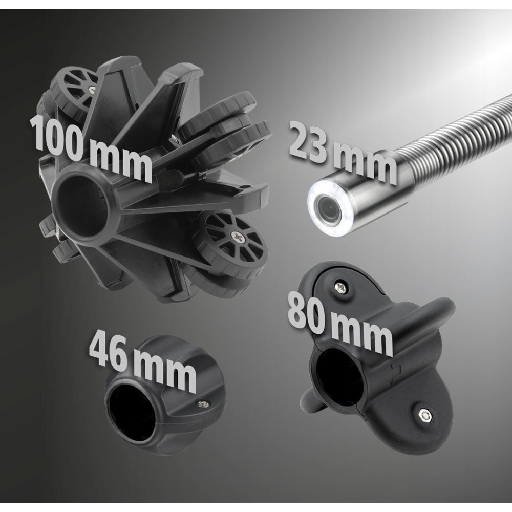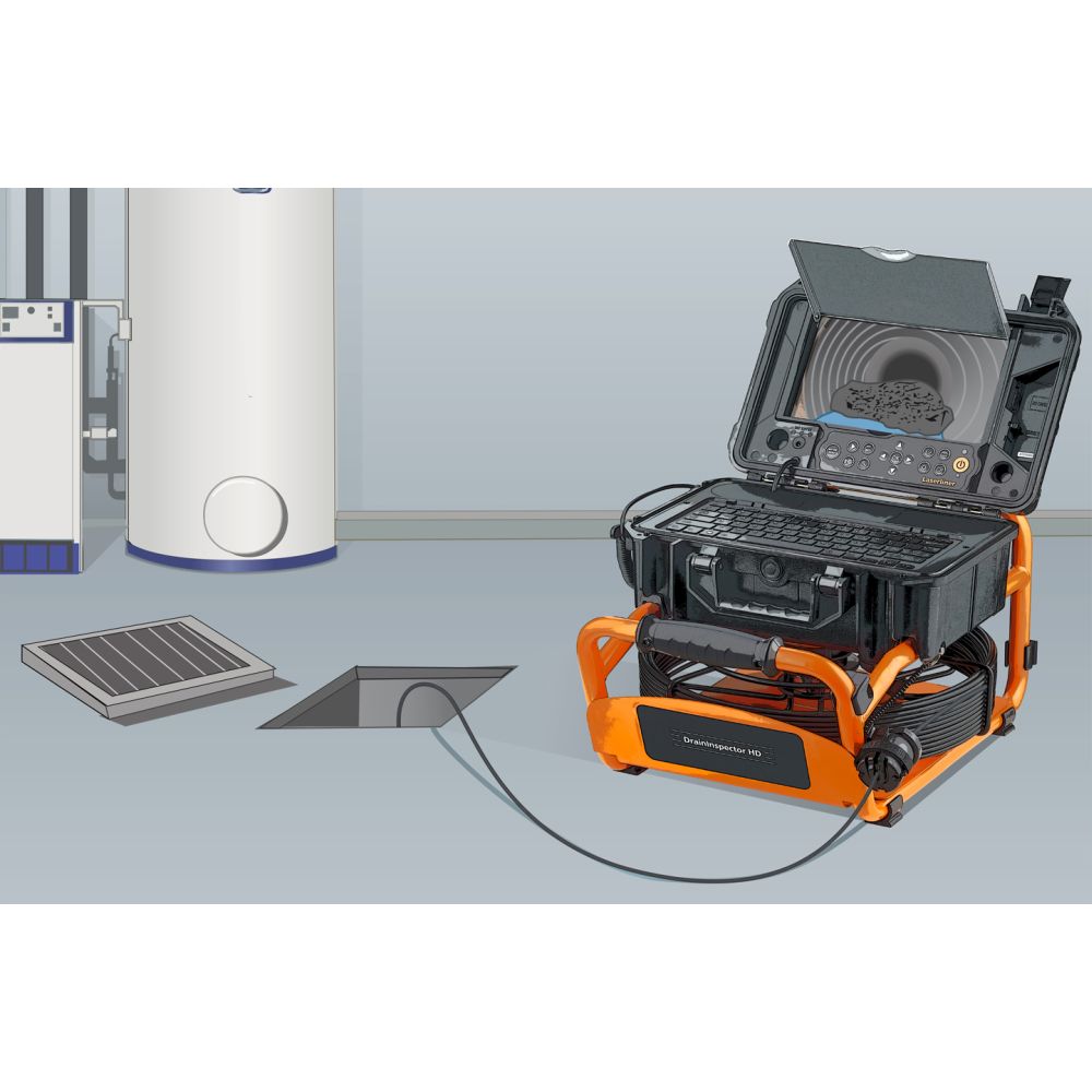 Omschrijving: Dit professioneel leidinginspectiesysteem is geschikt voor leidingdiameters vanaf DN 50 voor sanitair, lekdetectie en gebouwentechniek. Met de 30 meter lange PushFlex Cable kunnen alle toepassingen in huis worden gedekt. De glasvezelversterkte schuifkabel biedt de optimale combinatie van vormstabiliteit voor het inschuiven en de flexibiliteit voor vertakte leidingsystemen. De camera met hoge resolutie biedt gedetailleerde beeld- en video-opnames en door de duidelijke digitale zoom kunnen details uitstekend worden herkend. 15 hoogrendements-leds zorgen voor perfecte verlichting en AutoLevelView lijnt het beeld automatisch horizontaal uit. Twee Skid Adapters (80/46 mm) vergemakkelijken het passeren van verbindingspunten, de Centering Skid adapter (100 mm) centreert de camera voor optimale uitlijning en zicht rondom. Het apparaat beschikt bovendien over een schriftelijke commentaarfunctie via het toetsensbord en een geluidsopname waarmee video's tijdens de opname van commentaar kunnen worden voorzien. Voor de documentatie kunnen de beeld-, video- en geluidsopnamen worden opgeslagen op de SD-geheugenkaart.