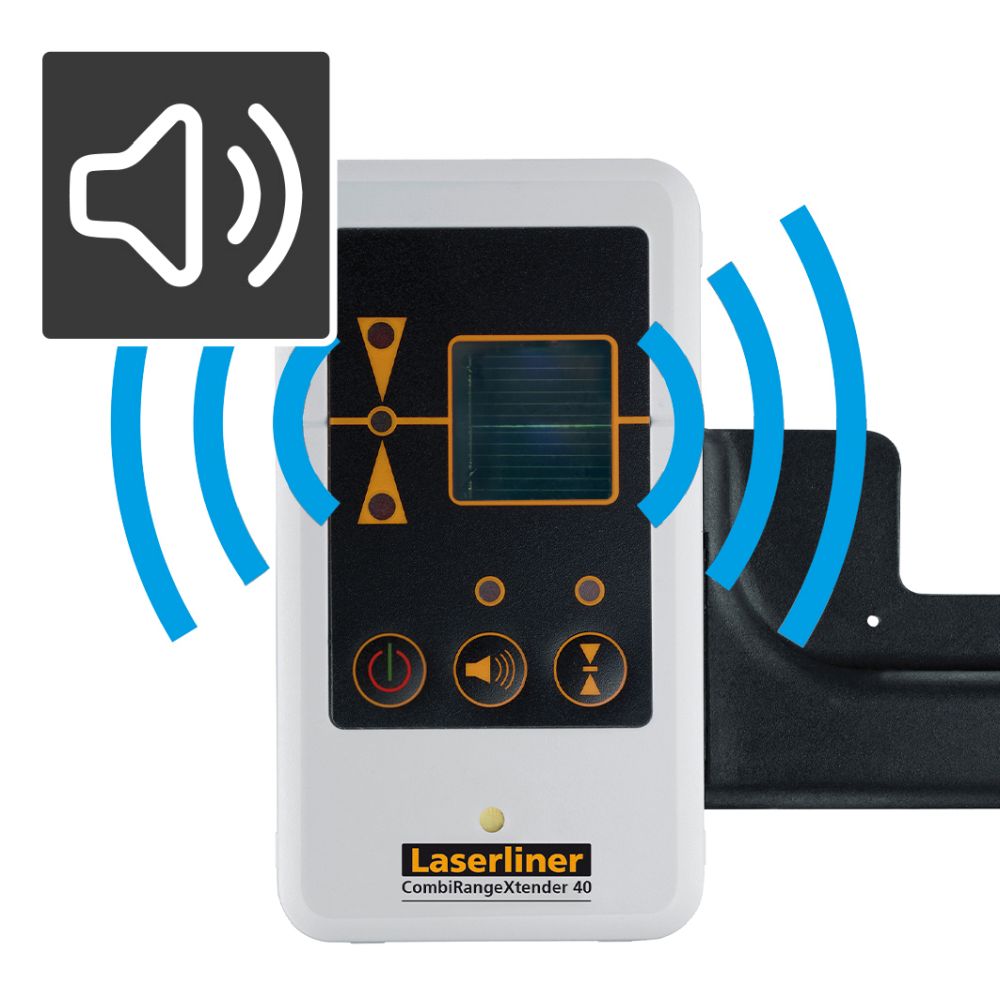 Description: The laser receiver detects red and green laser lines. The device thus allows horizontal and vertical reference dimensions to be precisely established in bright lighting conditions and over long distances. The user is notified by LED signals when laser lines are identified. The universal bracket and the magnets provide easy attachment to measuring staves and metal surfaces.