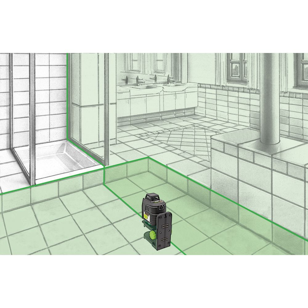 Omschrijving: Deze driedimensionele, handige en goed zichtbare groene laser projecteert een twee horizontale en twee verticale lasercirkels voor de exacte uitlijning van voorwerpen. Door de ver onderaan aangebrachte horizontale lasercirkel is het apparaat bijzonder geschikt voor toepassingen dicht bij de grond, zoals het bepalen van vloerhoogtes, en voor het uitlijnen van plinten. De laserkruisen vormen een loodfunctie voor het synchroon werken op vloer en plafond. Voor het aanleggen van hellingen staat een handmatige hellingsmodus ter beschikking. Dankzij het omvangrijke toebehoren is deze laser een extreem veelzijdige hulp voor veeleisende projecten. De PocketWallHolder is een multifunctionele, in hoogte verstelbare en magnetische houder voor het aanbrengen van de laser op wanden, metalen constructies en op statieven met 1/4"- en 5/8"-schroefdraad.